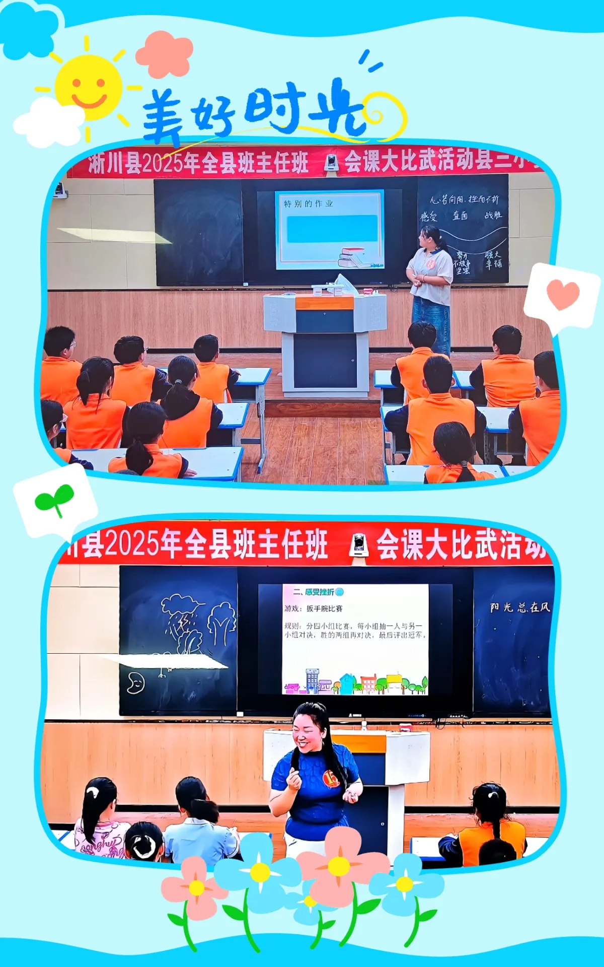 育人智慧展风采,以赛促教启新程。 赛课是练兵场,班会是德育教育的主阵地。本次“心向阳光,健康成长”班会课县级大比武已落下帷幕。在这精彩纷呈的交流中,我们见证了多样的智慧与创意。每一个精心设计的环节,每一次真诚深入的分享,都如同一束束微光,汇聚成照亮心灵的暖阳。