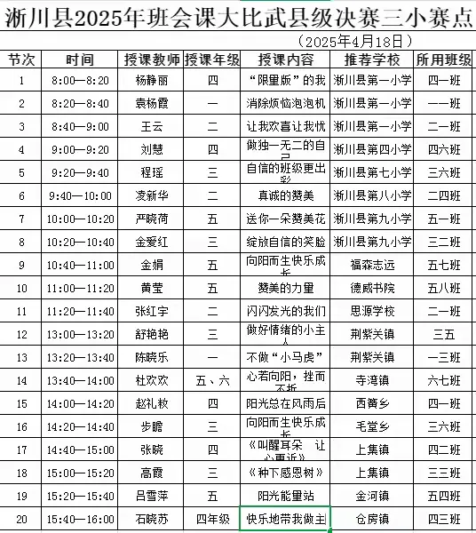 为了提升班主任的专业素养和育人能力,根据《淅川县教育体育局关于开展2025年春期“万名班主任班会课大比武”的通知》精神,2025年4月18日以“心向阳光,健康成长”为主题的班会课大比武赛课县级决赛活动在淅川县第三小学赛点隆重举办。本次活动旨在通过形式多样的课堂展示,激发班主任的教育热情,推动全县班主任育人管理水平的整体提升,从而提高学生的身体素质与抗压能力,引导学生积极面对困难和挫折,以阳光的心态面对学习和生活,促进学生身心健康全面发展。