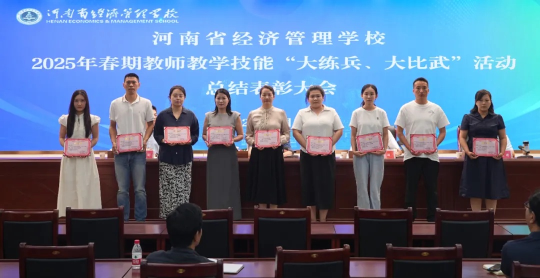 会议宣读了《河南省经济管理学校关于公布2025年春期教师教学技能“大比武”活动获奖名单的通知》,为获奖教师颁发荣誉证书,获奖教师纷纷表示,将以此次活动为新起点,深耕教学一线,深化“三教”改革,努力打造更多“金课”,为学校教育教学高质量发展贡献力量。
