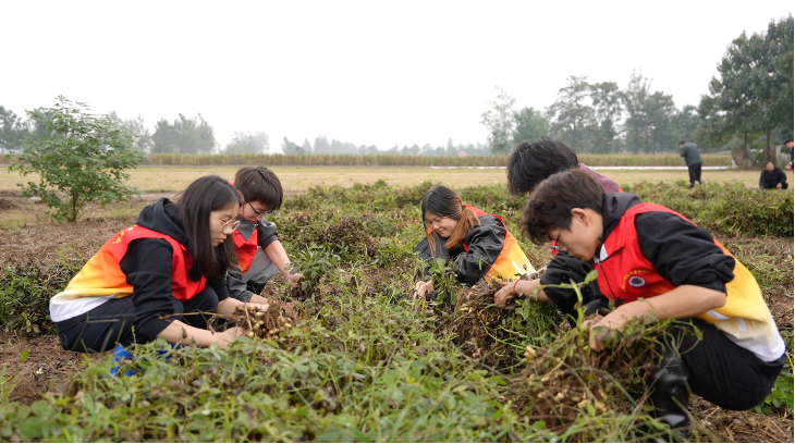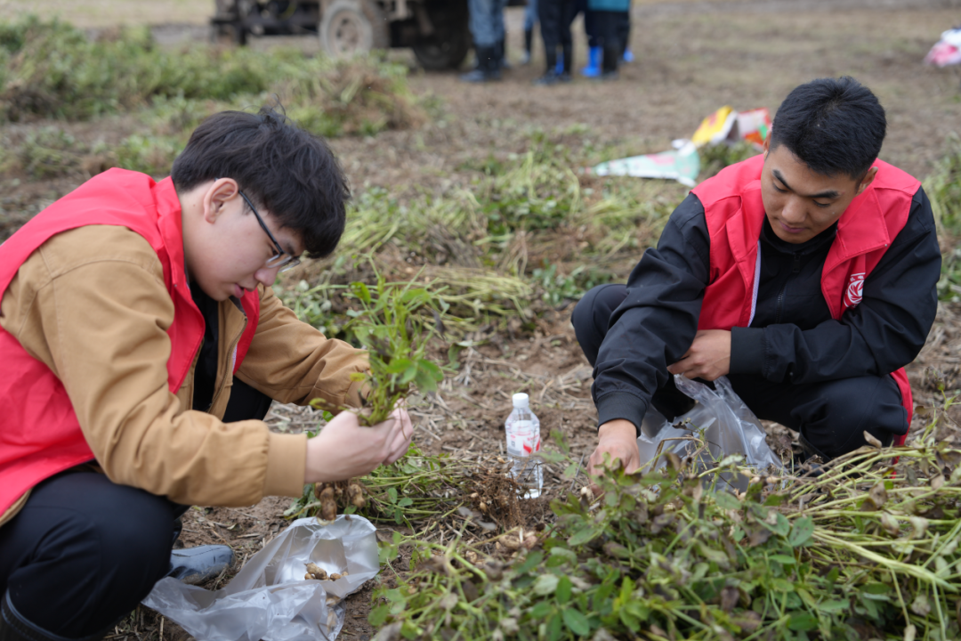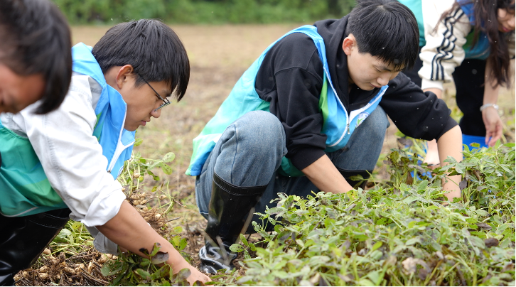 随后,在技术人员指导下,师生们迅速投入花生采收工作。大家穿上胶鞋、俯身田间,学习拔花生、抖土、分拣的技巧。尽管动作略显生疏,但每个人都认真投入,在劳动中切身感受“粒粒皆辛苦”的含义。