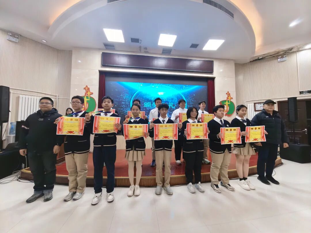 在颁奖典礼环节,校长闫凯为获奖学生颁奖并深情寄语:“科技是点亮未来的火种,希望同学们永葆这份探索热情,让创新思维成为人生最亮的底色,在科学道路上不断攀登新高峰!”随后,闫校长进一步勉励全体师生:“今日之创意,是明日之突破的萌芽;今日之探索,是未来之创新的基石。愿我们以科技为舟,以创新为帆,在时代的浪潮中勇立潮头,共同书写属于未来的科学传奇!”闫校长的讲话将活动推向情感高潮,既肯定了同学们的科创成果,更以“火种”为喻,激励全体师生以科技为炬、以创新为翼,在探索未知的征程中永葆热忱。