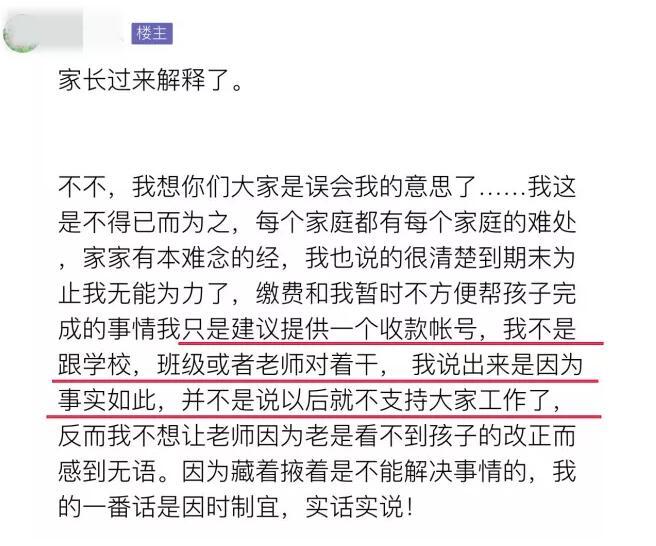 帖子火了之后,,这位“霸气家长”又做了一番解释。