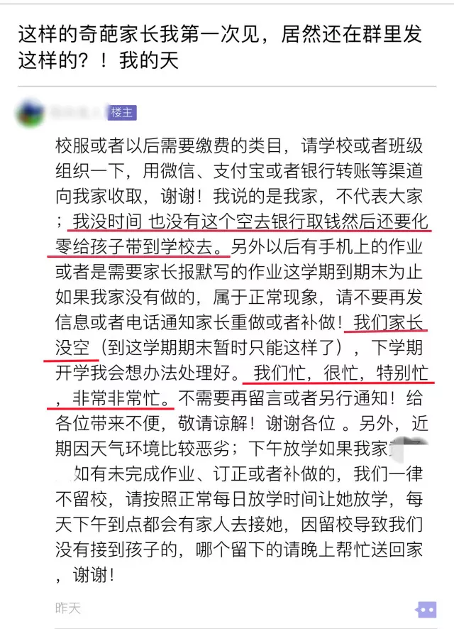 有网友说,“霸气”家长说出了心声,只是大家不敢在班级群里说。