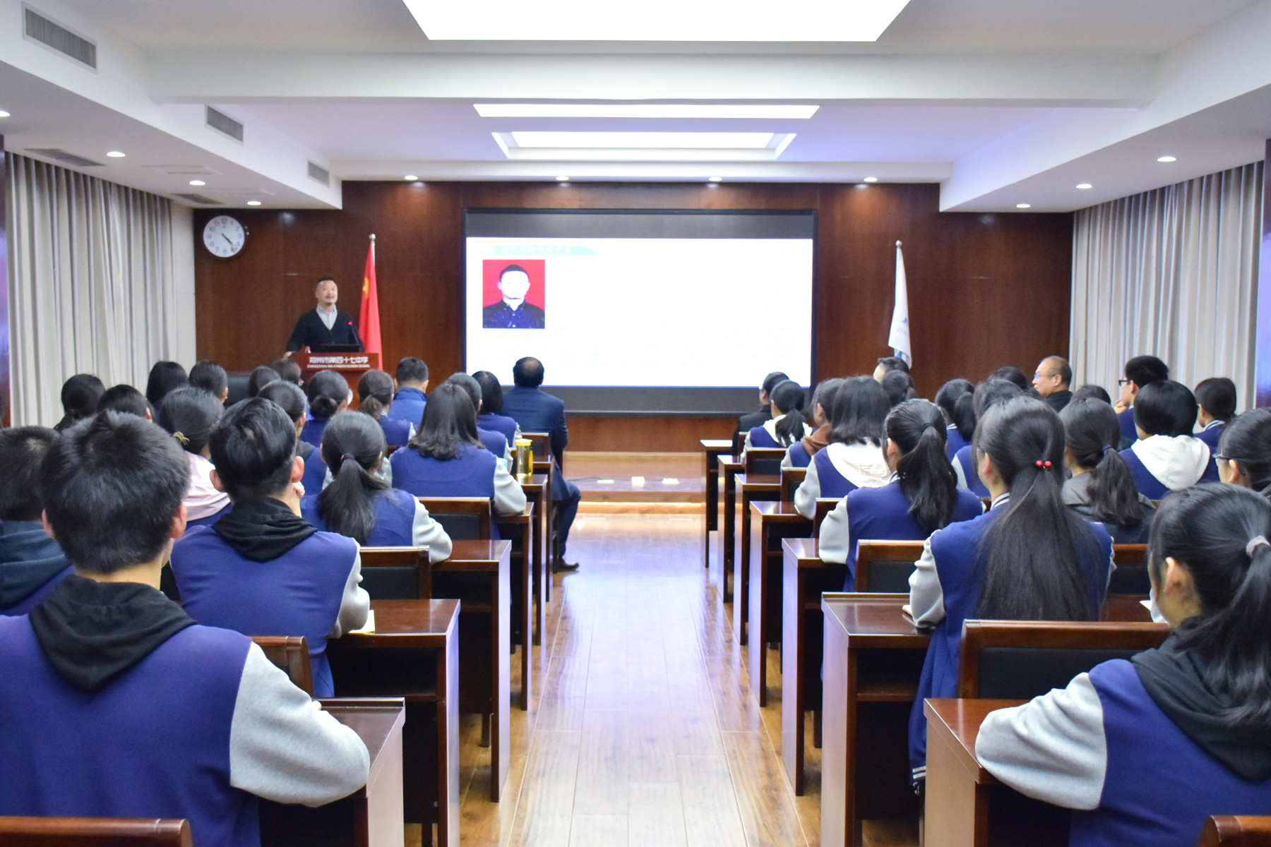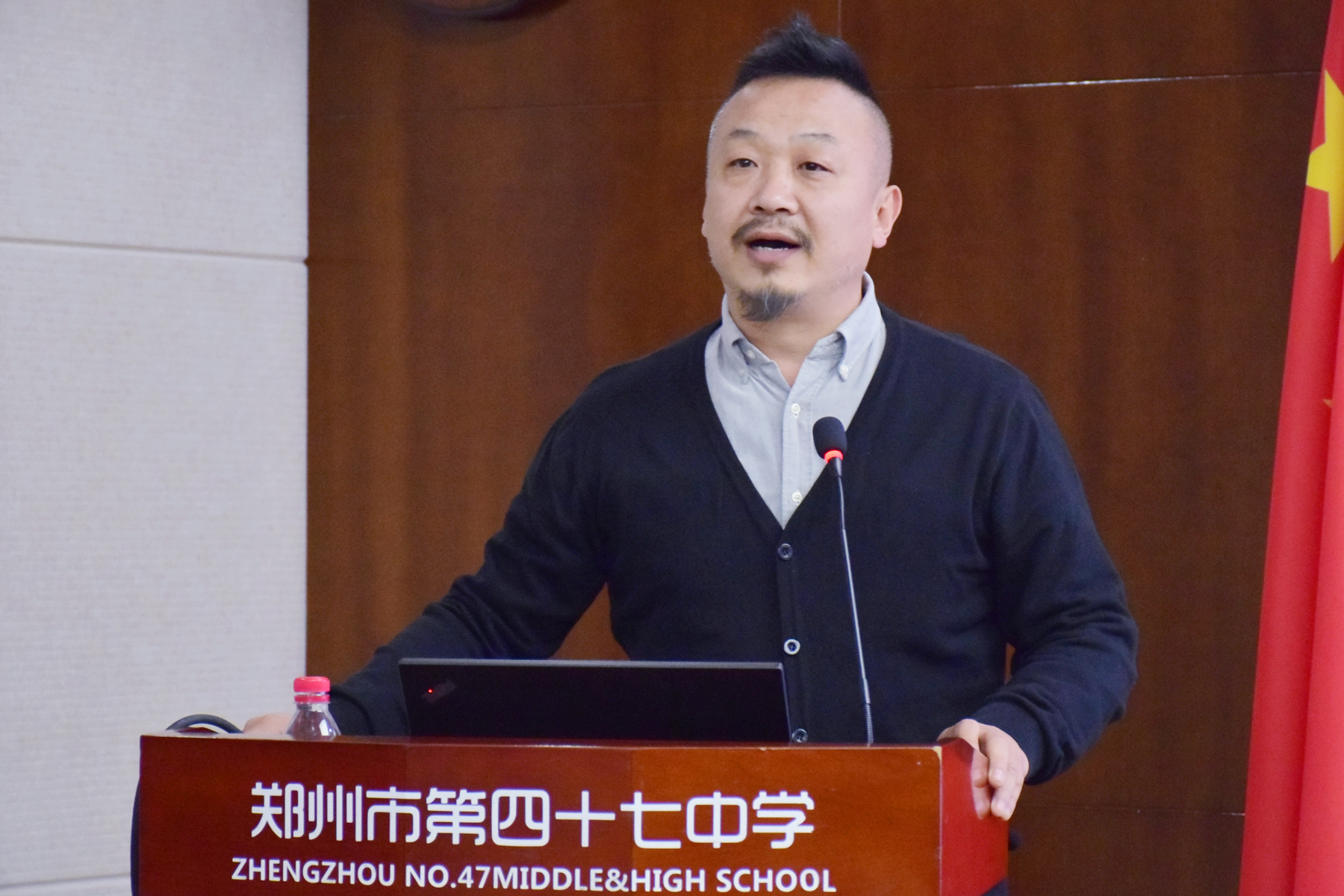 4月22日下午,郑州47中行政楼第一会议室传来了阵阵热烈掌声,原来这里是西安工业大学苏胜教授正在给师生们讲授《日本传统文化与日本设计》讲座。郑州47中副校长栗红涛、全体老师、高二年级文科宏志班及日本社团的学生参加了报告会,报告由副校级督学、教科室主任姚强主持。